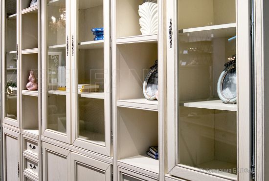 Шкаф 1-но дверный со стеклом "Оскар" (правый), белая эмаль с тёмной патиной, (.Г000027645)