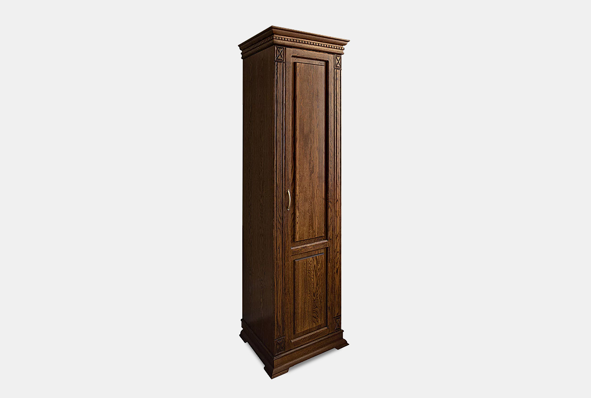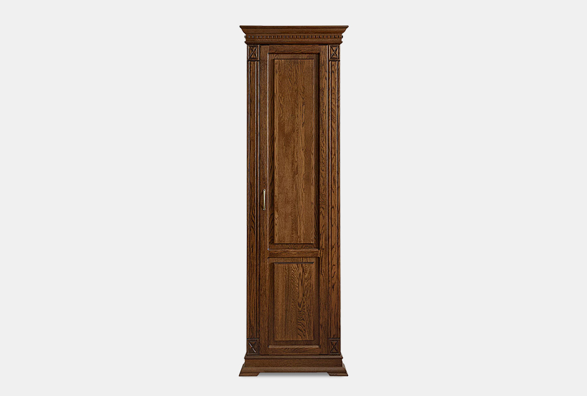 Благодаря своей ширине однодверный шкаф из коллекции «Верди Люкс» подойдет даже для небольшого помещения. Несмотря на это, он очень вместительный и имеет продуманное функциональное наполнение: штангу для одежды и верхнюю полку. Шкаф подойдет не только для гостиной и спальни, но и для прихожей: на дно Вы можете поставить коробки с обувью.