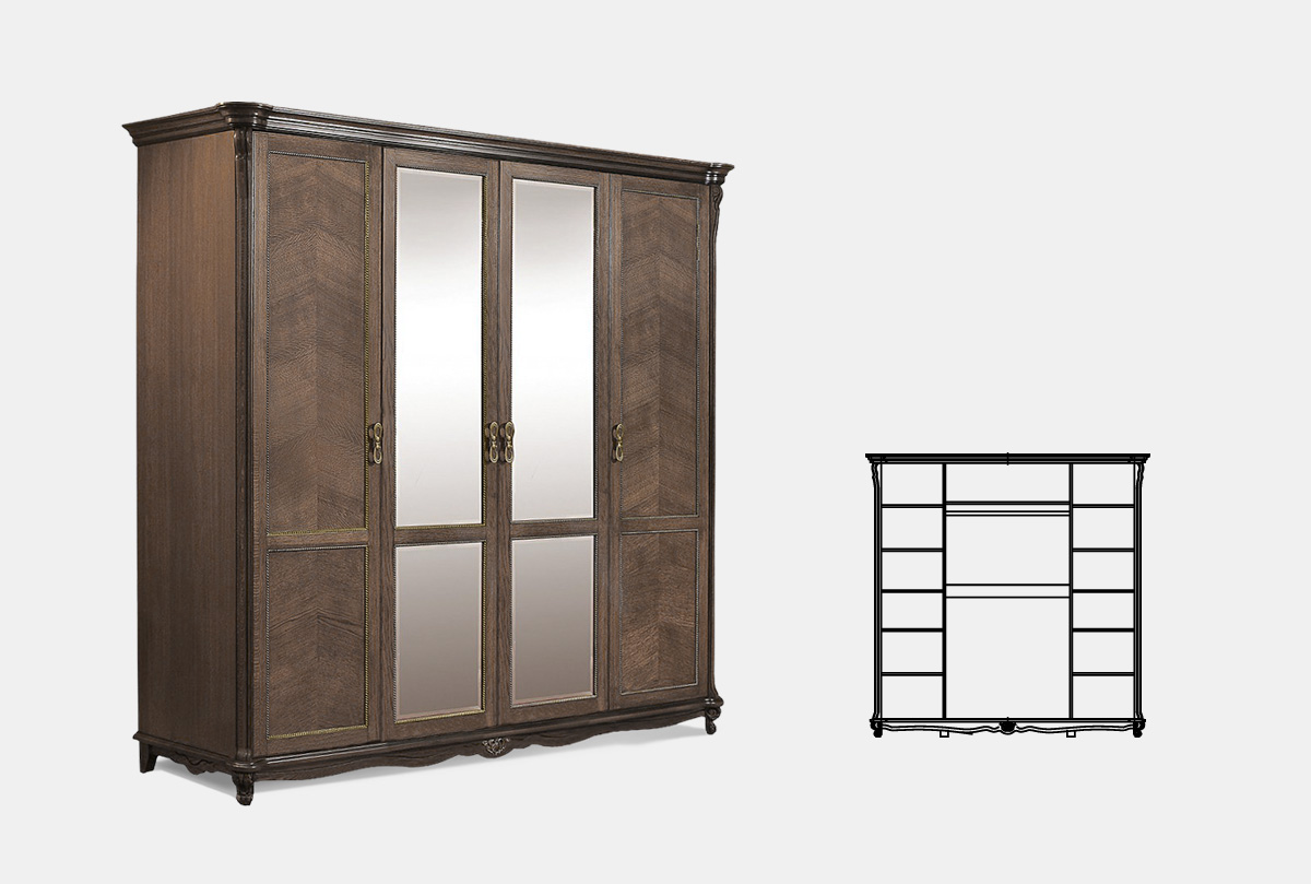 Шкаф 4-х дв. "Алези", античная бронза, (.Г000017129)