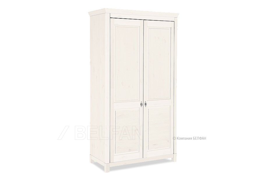 Двухдверный шкаф «Рауна» 20 для спальни в стиле Прованс предлагает достаточно места для ваших вещей. За двумя дверями вы можете прекрасно хранить футболки, свитера или брюки на трех регулируемых полках. Блузки, рубашки и платья находят свое место на штанге для одежды.