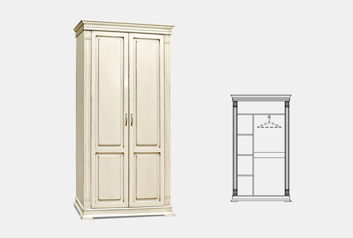 Шкаф двухдверный для одежды Верди Люкс 2/2 из массива дуба в классическом стиле, размеры: 115 х 200 см.