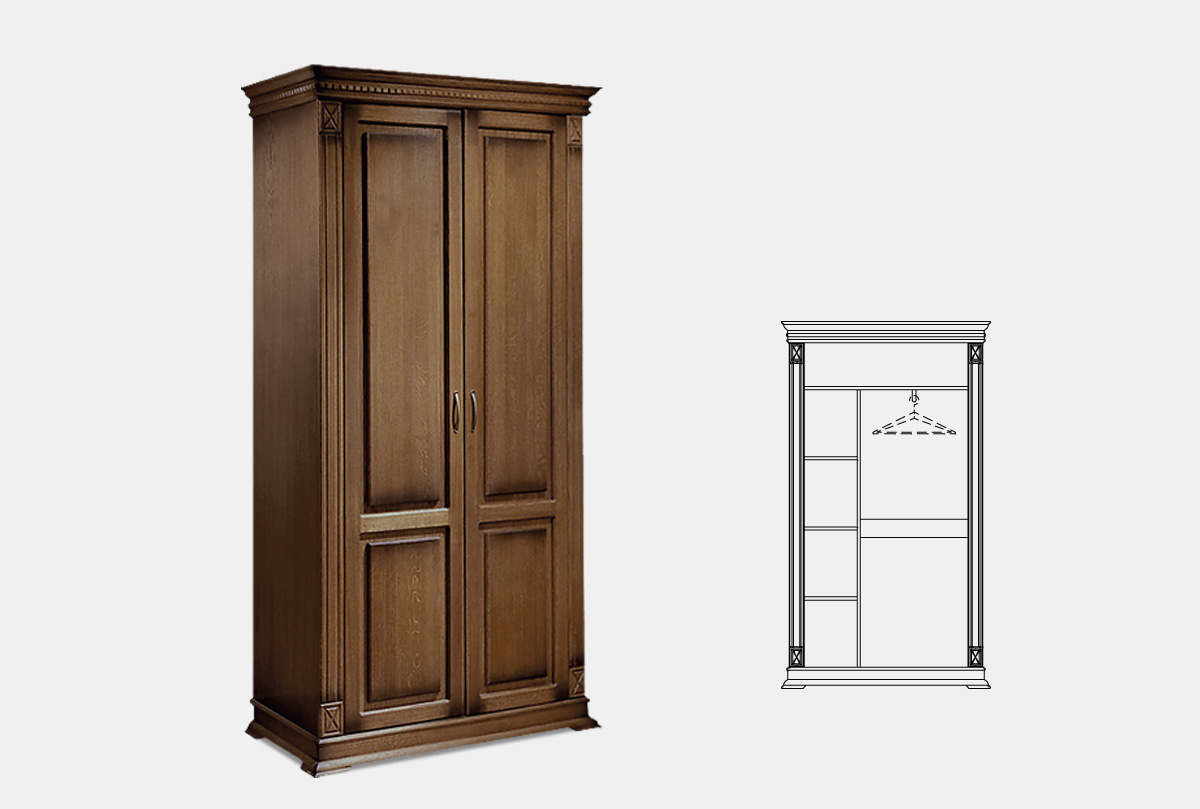 Шкаф двухдверный для одежды Верди Люкс 2/2 из массива дуба в классическом стиле, размеры: 115 х 200 см.