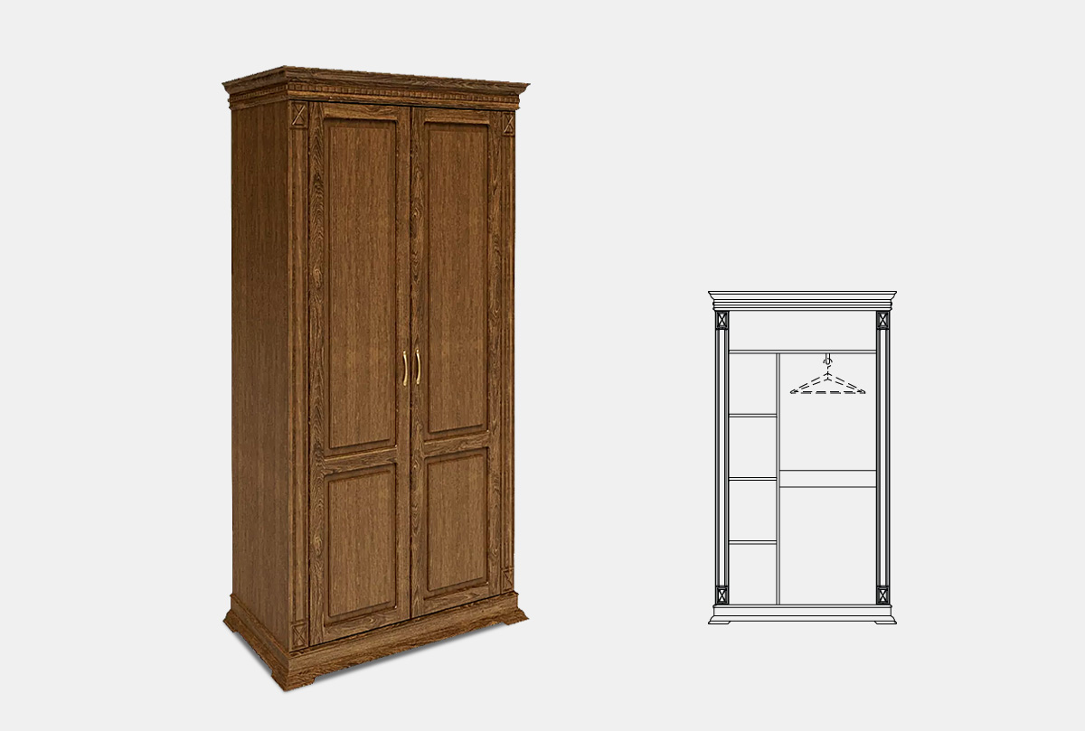 Шкаф двухдверный для одежды Верди Люкс 2/2 из массива дуба в классическом стиле, размеры: 115 х 200 см.