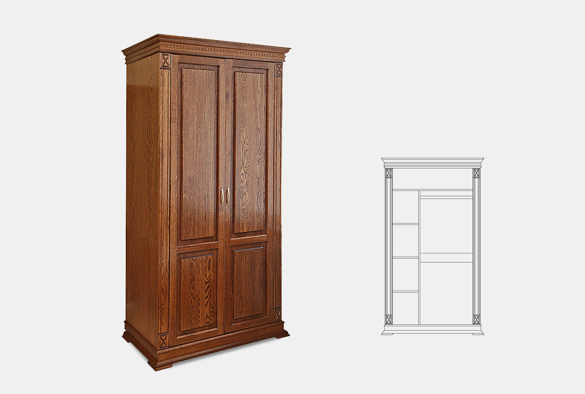 Шкаф двухдверный для одежды Верди Люкс 2/3 из массива дуба в классическом стиле, Размеры изделия: 1148 х 1996 х 637 мм.