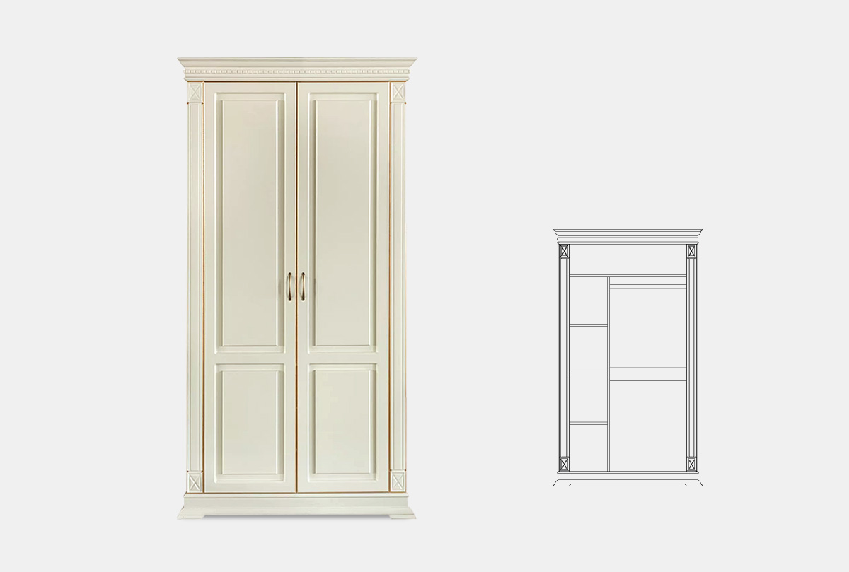 Шкаф для одежды 2-х дв. "Верди Люкс 2/3", слоновая кость с золочением, (.Г000068172)