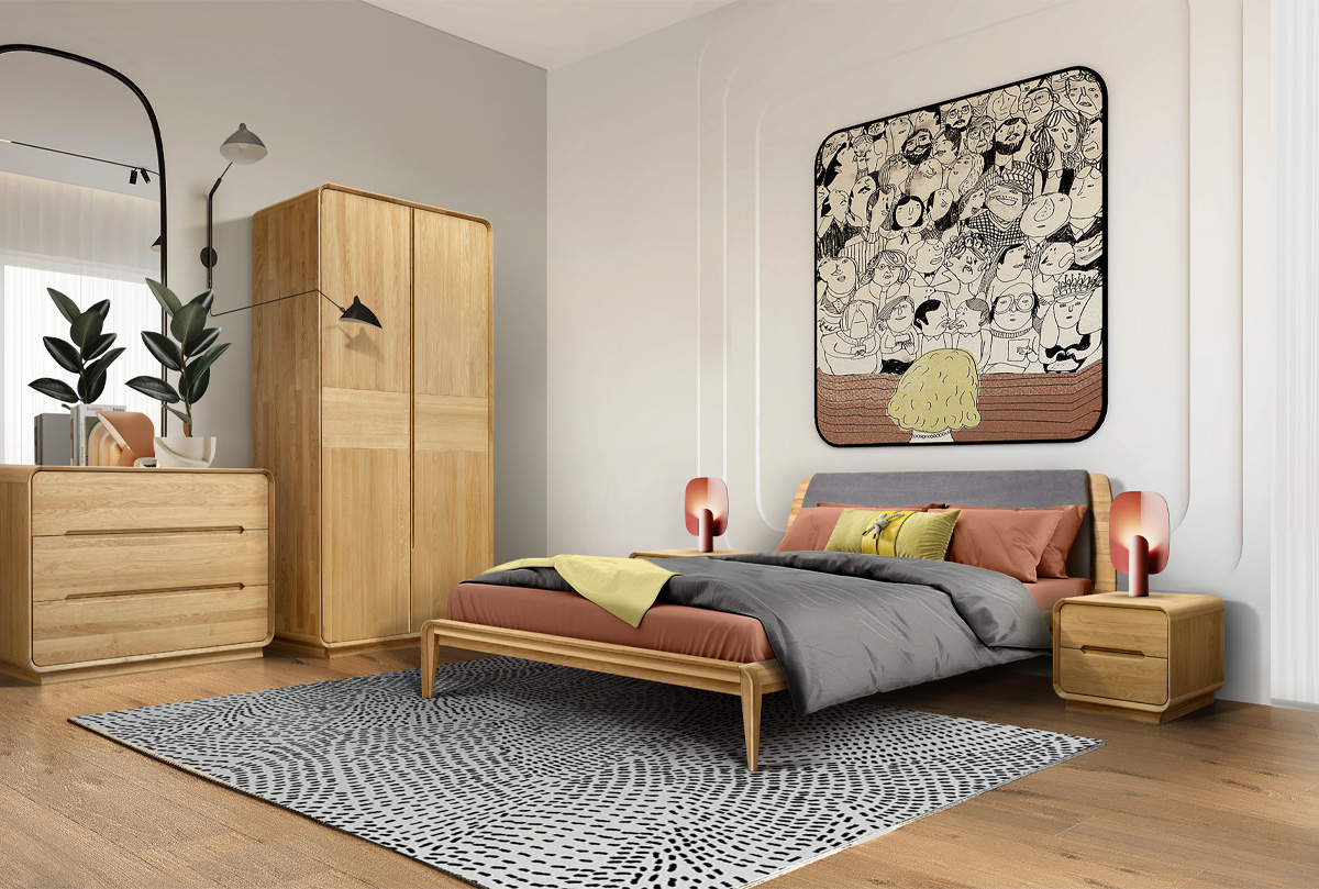 ✅ Экологичные покрытия подчеркивают текстуру дуба и создают тактильную мягкость поверхности.