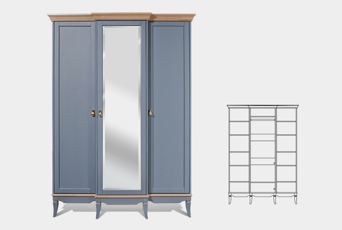 Особенности трехдверного шкафа для одежды с зеркалом «Стюарт»: