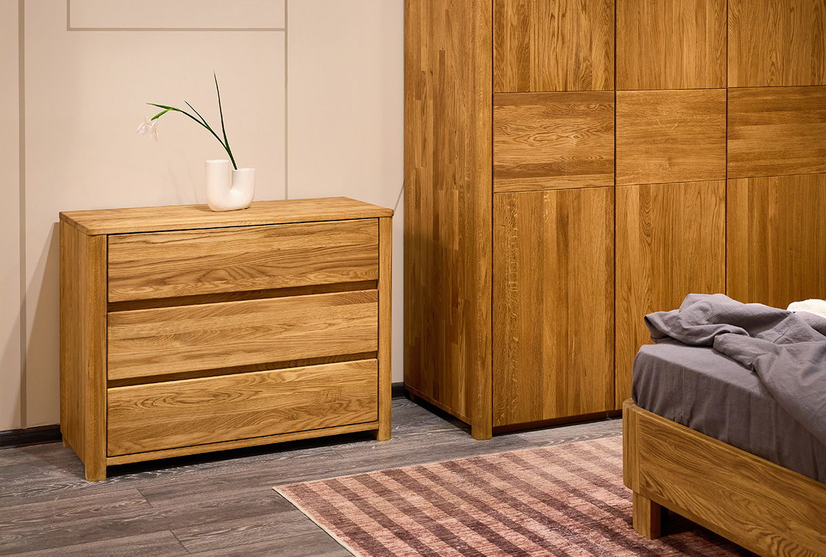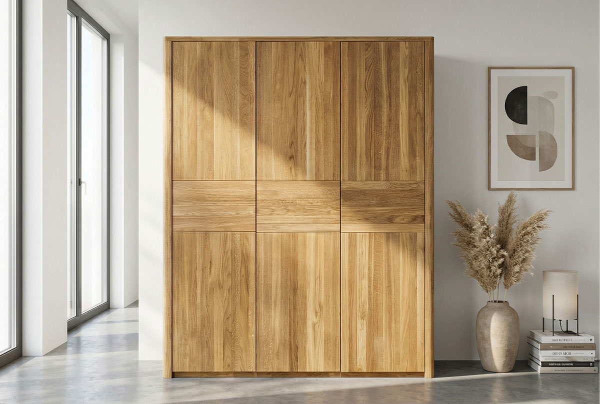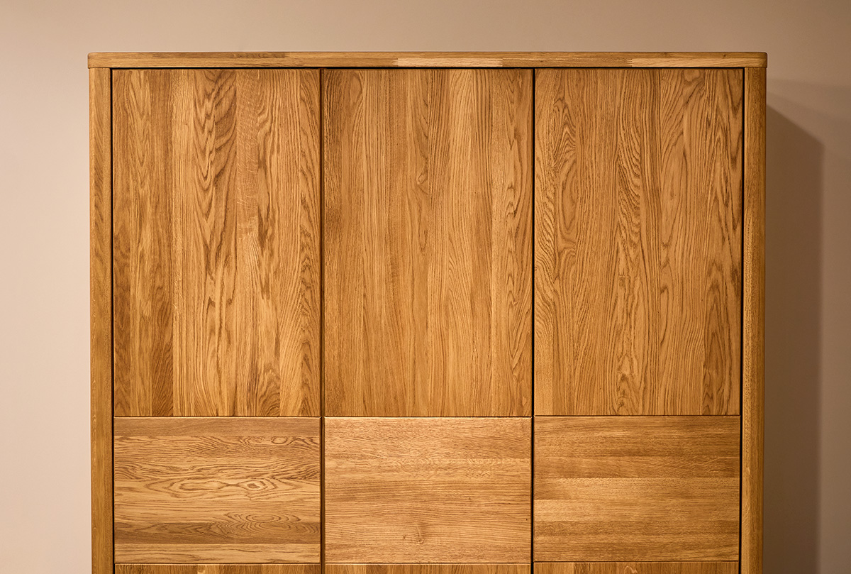 ✅ Цельные скругленные стойки боковины шкафа из благородного массива дуба, которые придают формам мягкость и утонченность.