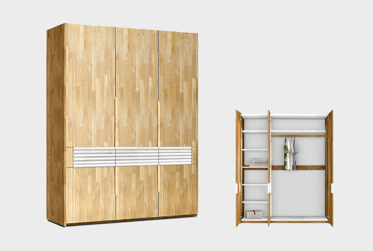 В коллекции представлен трехдверный шкаф для одежды Wallstreet ("Уоллстрит") с сочетанием текстуры натурального дерева и акцентных вставок, который собрал в себя черты современного стиля. Сдержанно-светлая цветовая гамма, упорядоченность внутреннего пространства шкафа, разные фасады или вставки на выбор. Шкаф для одежды Wallstreet благодаря светлым цветам отлично сочетается с другими элементами интерьера спальни, детской, гостиной или прихожей.