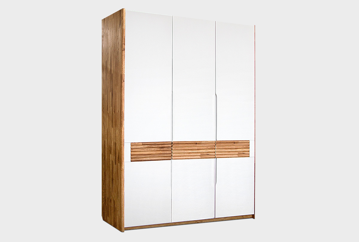 Трехдверный шкаф для одежды Wallstreet в цвете «к-бейц-масло, ф-белый, вст-бейц-масло» с сочетанием текстуры натурального дерева и акцентных вставок, который собрал в себя черты современного стиля. Сдержанно-светлая цветовая гамма, упорядоченность внутреннего пространства шкафа. Шкаф для одежды Wallstreet благодаря светлым цветам отлично сочетается с другими элементами интерьера спальни, детской, гостиной или прихожей.