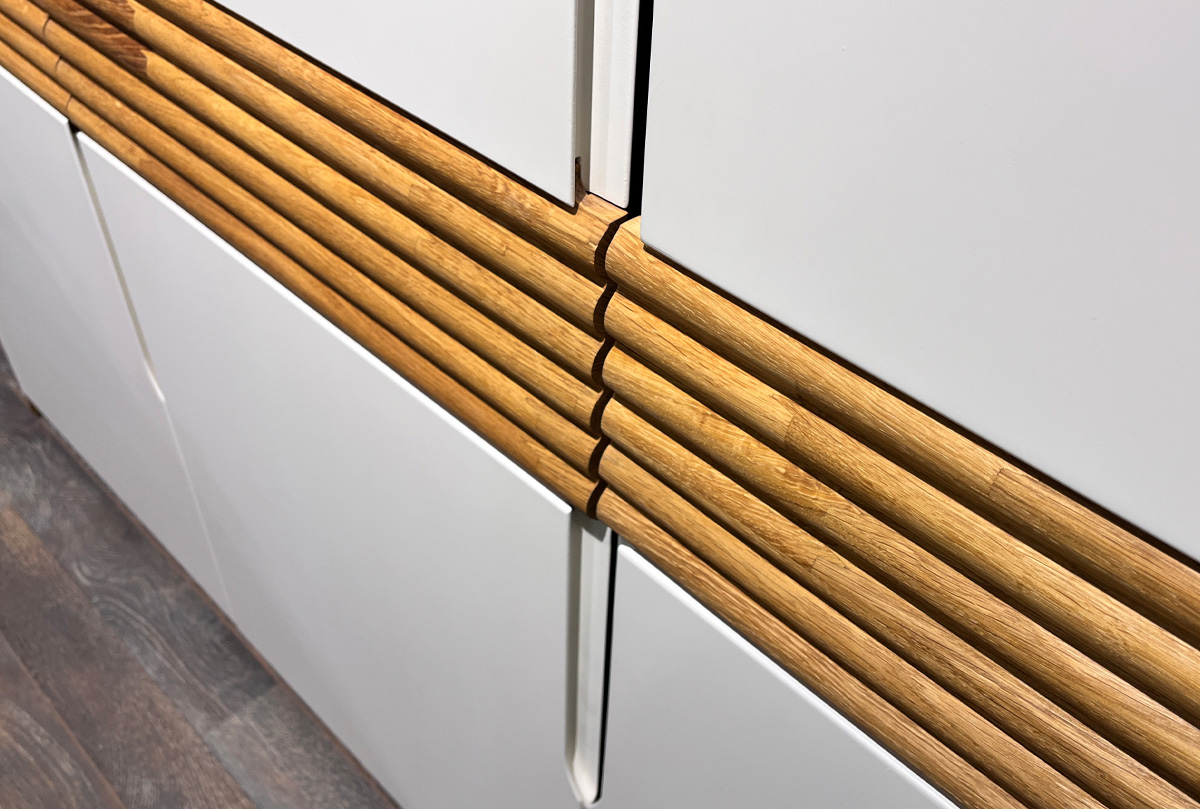 ✅ Шкаф изготовлен из комбинации материалов - массива дуба и эмали. Из массива дерева изготовлен корпус и вставка с фрезеровкой.