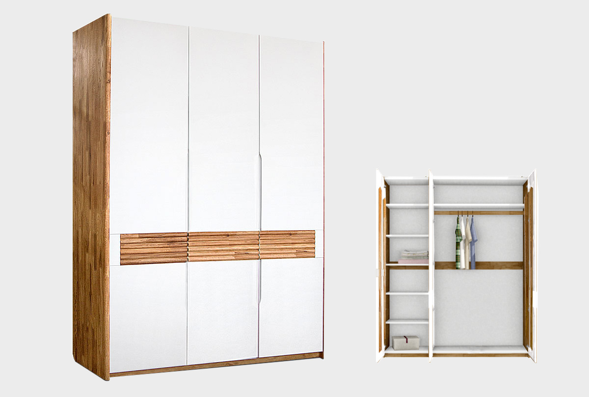 Шкаф для одежды 3-х дверный "Wallstreet"; к-бейц-масло, ф-белый, вст-бейц-масло