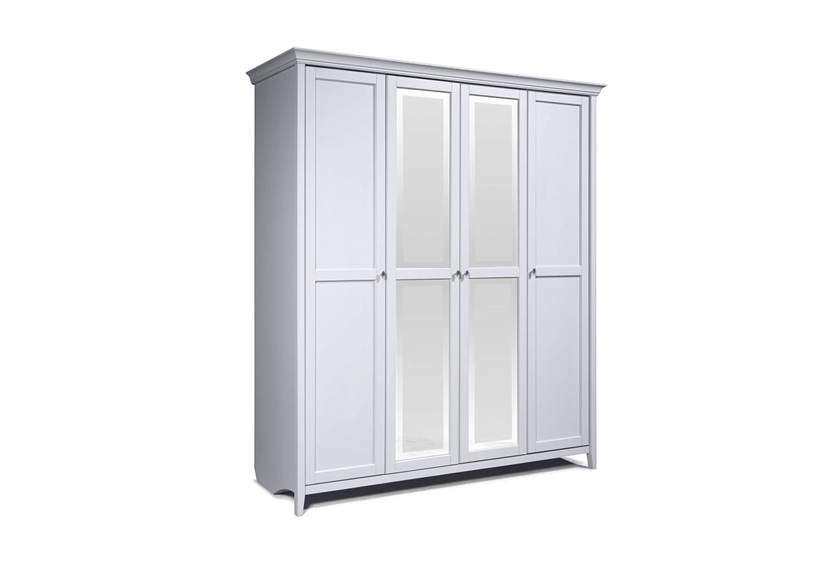 Четырехдверный шкаф для одежды «Адель» с зеркалом из ольхи в стиле современного Прованса.