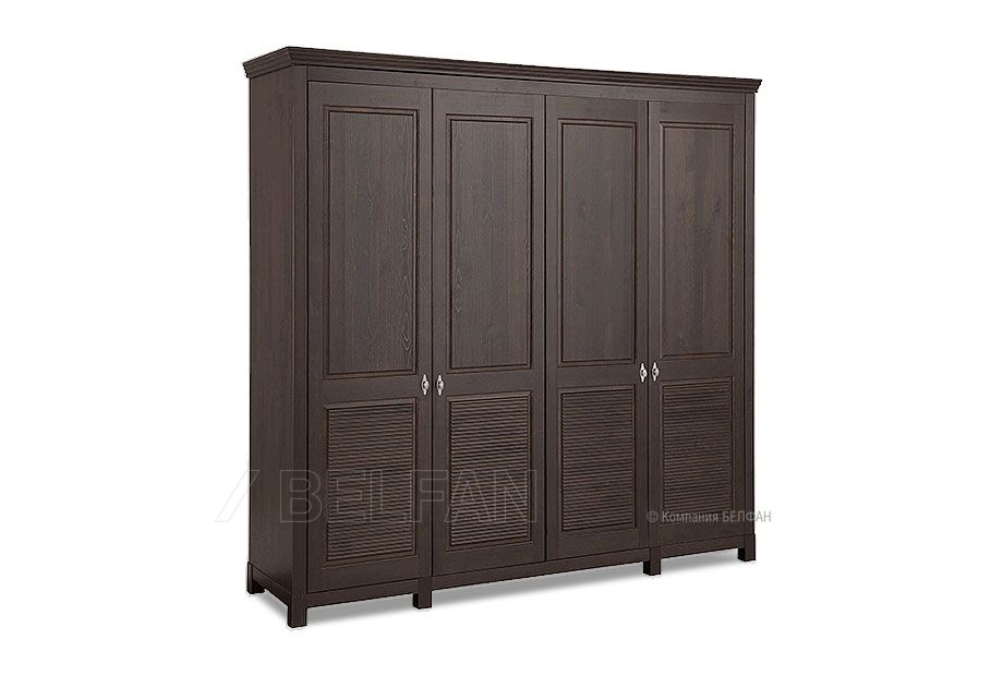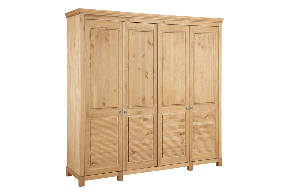 Четырехдверный шкаф для одежды «Рауна» 40 для спальни в стиле Прованс займет достойное место в вашем доме. За четырьмя распашными дверями вы найдете пространство для одежды со штангой, три регулируемые полки, секции для головных уборов и обуви. Это находка для тех, кто хотел бы грамотно организовать хранение всего своего гардероба, а также для семейного использования.