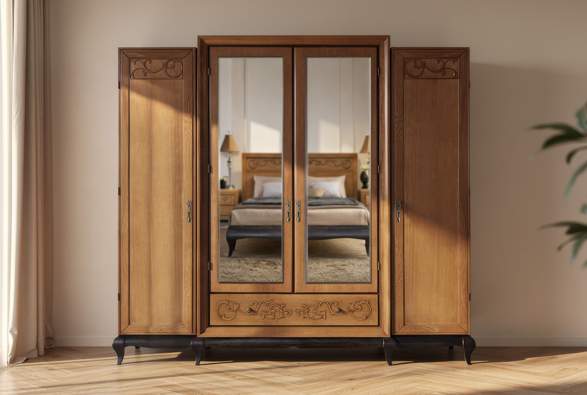 Особенности четырехдверного шкафа для одежды «Соната» (без декора):