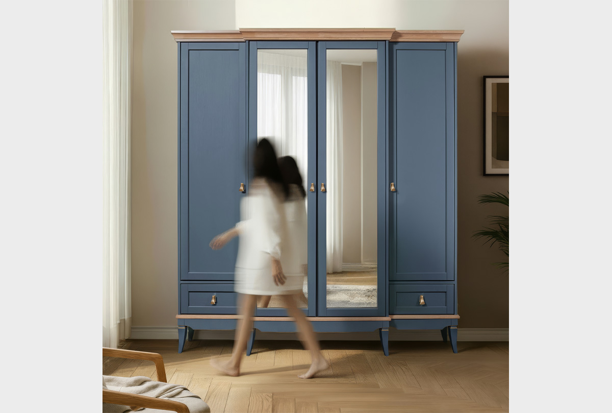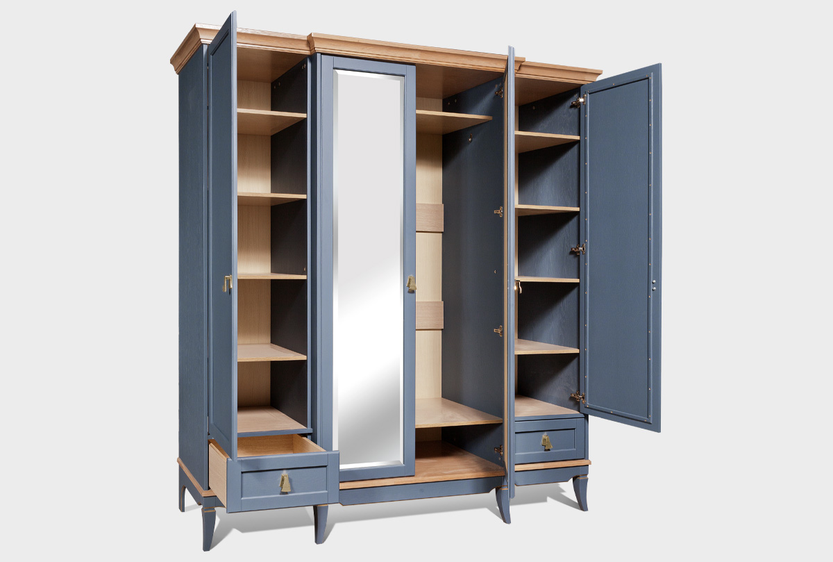Особенности четырехдверного шкафа для одежды с зеркалом «Стюарт»: