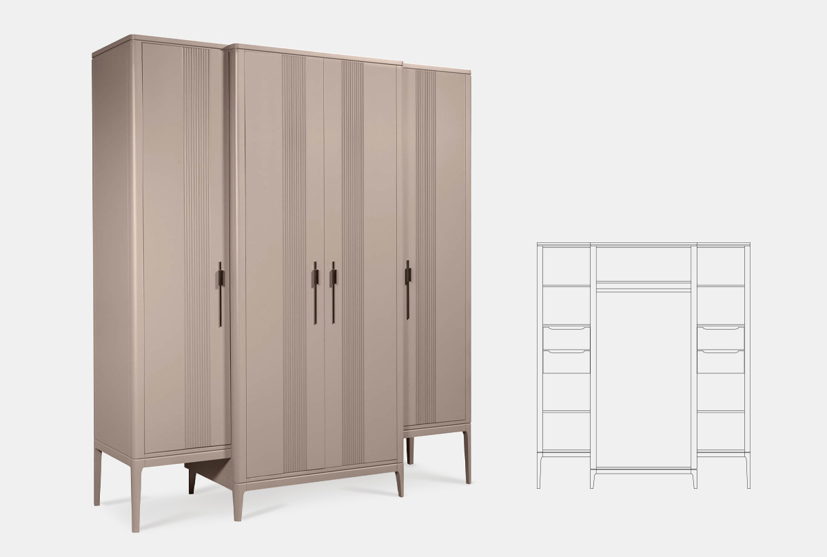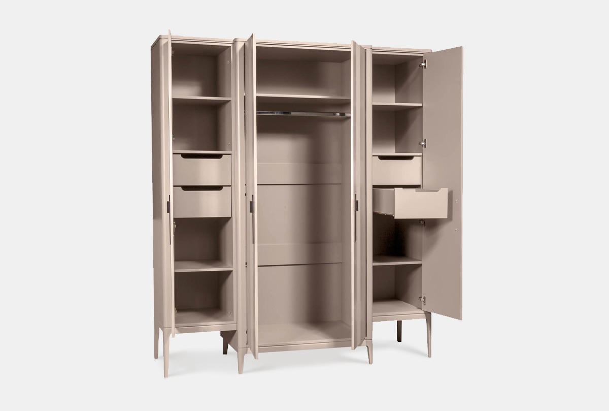 Особенности четырехдверного шкафа для одежды «Dune» (Дюна) в цвете «меренга»: