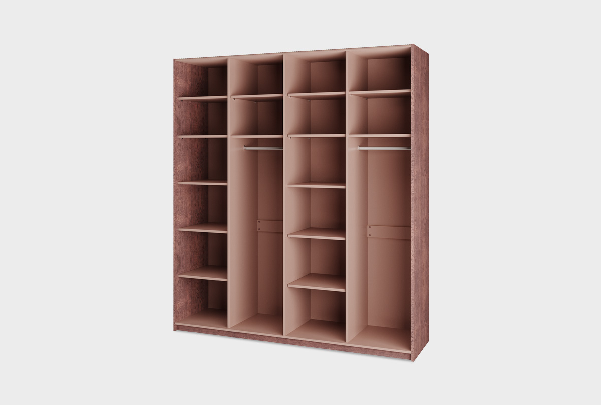 ✅ Внутреннее наполнение: практичное и продуманное - секции с горизонтальной штангой для одежды на плечиках, секции с полками для сложенных вещей, аксессуаров, обуви или коробов.
