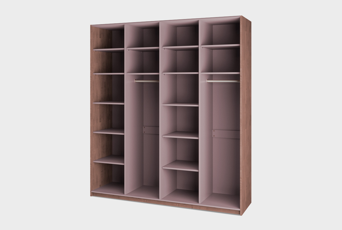 ✅ Внутреннее наполнение: практичное и продуманное - секции с горизонтальной штангой для одежды на плечиках, секции с полками для сложенных вещей, аксессуаров, обуви или коробов.