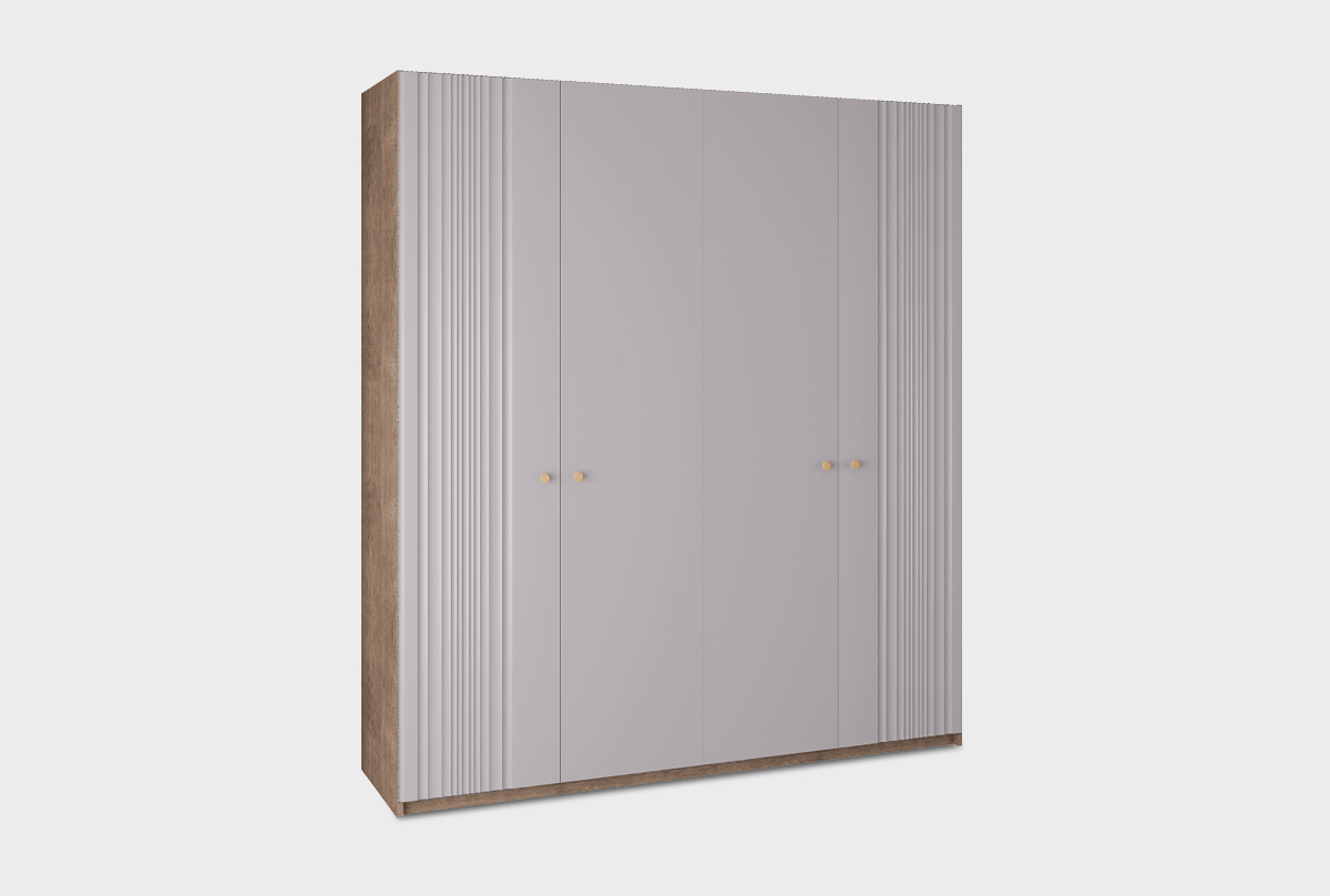 Комбинированный шкаф «Меридиан» 4-х дверный — главное решение для тех, кто ценит эстетику и продуманную функциональность. Это не просто вместительный гардероб — это лёгкая и утончённая композиция, которая украсит спальню или гардеробную.