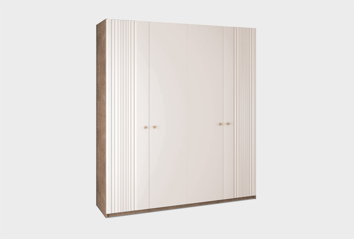 Комбинированный шкаф «Меридиан» 4-х дверный — главное решение для тех, кто ценит эстетику и продуманную функциональность. Это не просто вместительный гардероб — это лёгкая и утончённая композиция, которая украсит спальню или гардеробную.