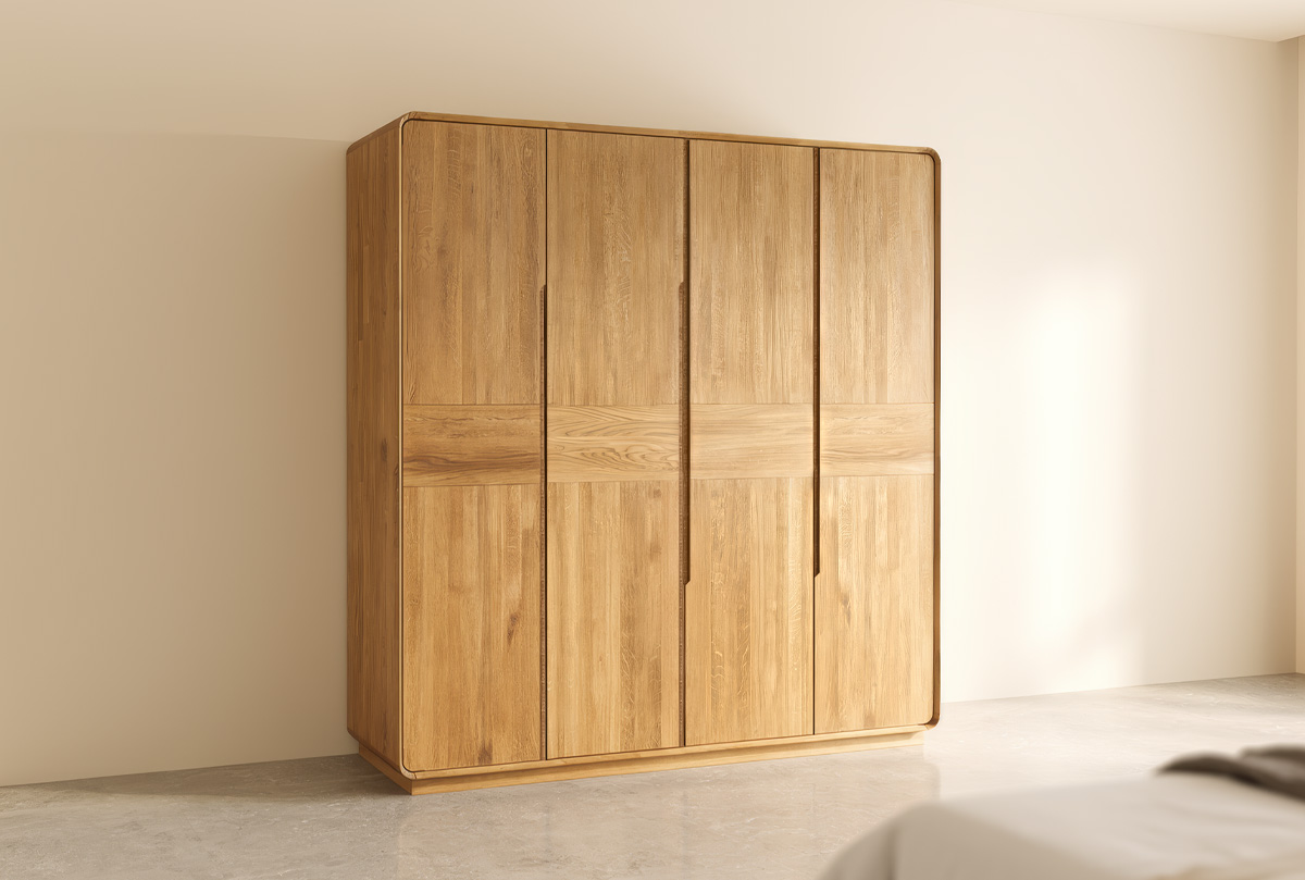 ✅ Шкаф четырехдверный изготовлен из массива натурального дерева с экологичными масляными крашениями, безопасными для семьи и окружающей среды.