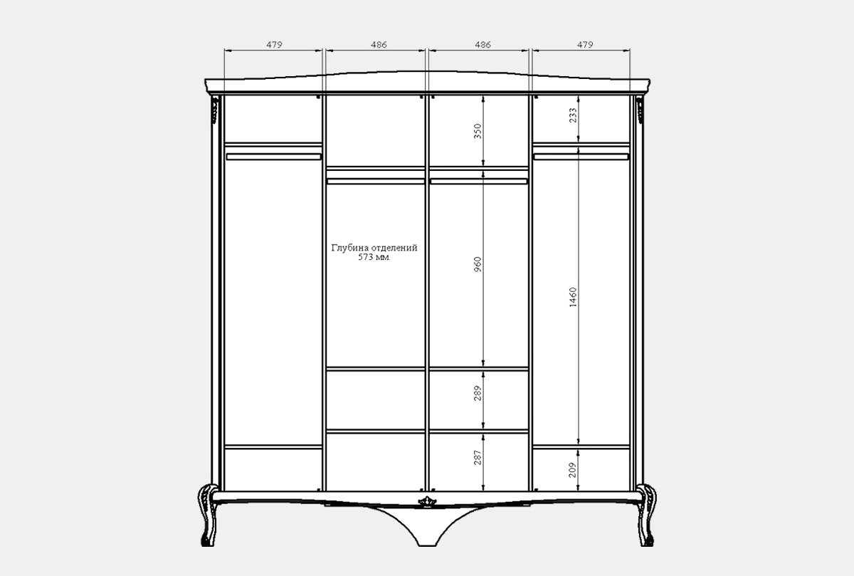 Особенности четырёхдверного шкафа Fleuron (с зеркалом):