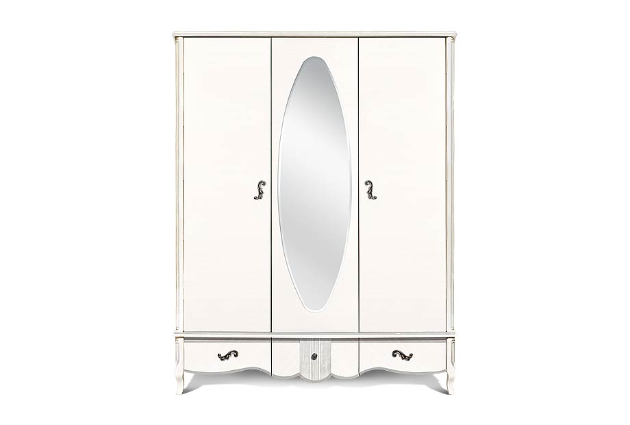 Шкаф для одежды "Katrin" 3-х дв. с зеркалом, альба с серебряной патиной, (.Г000051455)