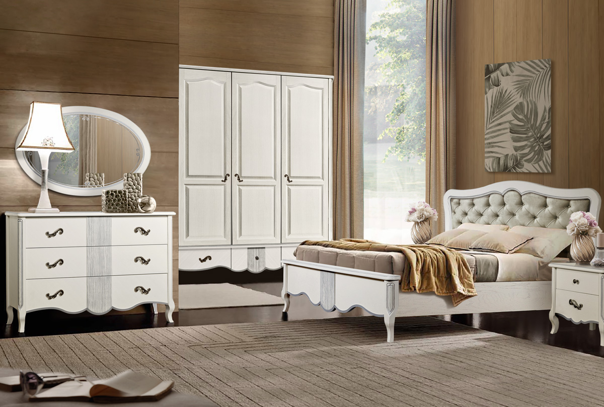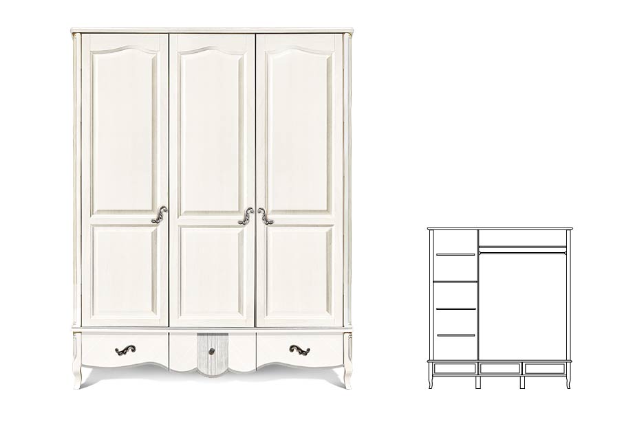 Шкаф для одежды "Катрин" фигурный 3-х дв. без зеркала; альба с серебряной патиной