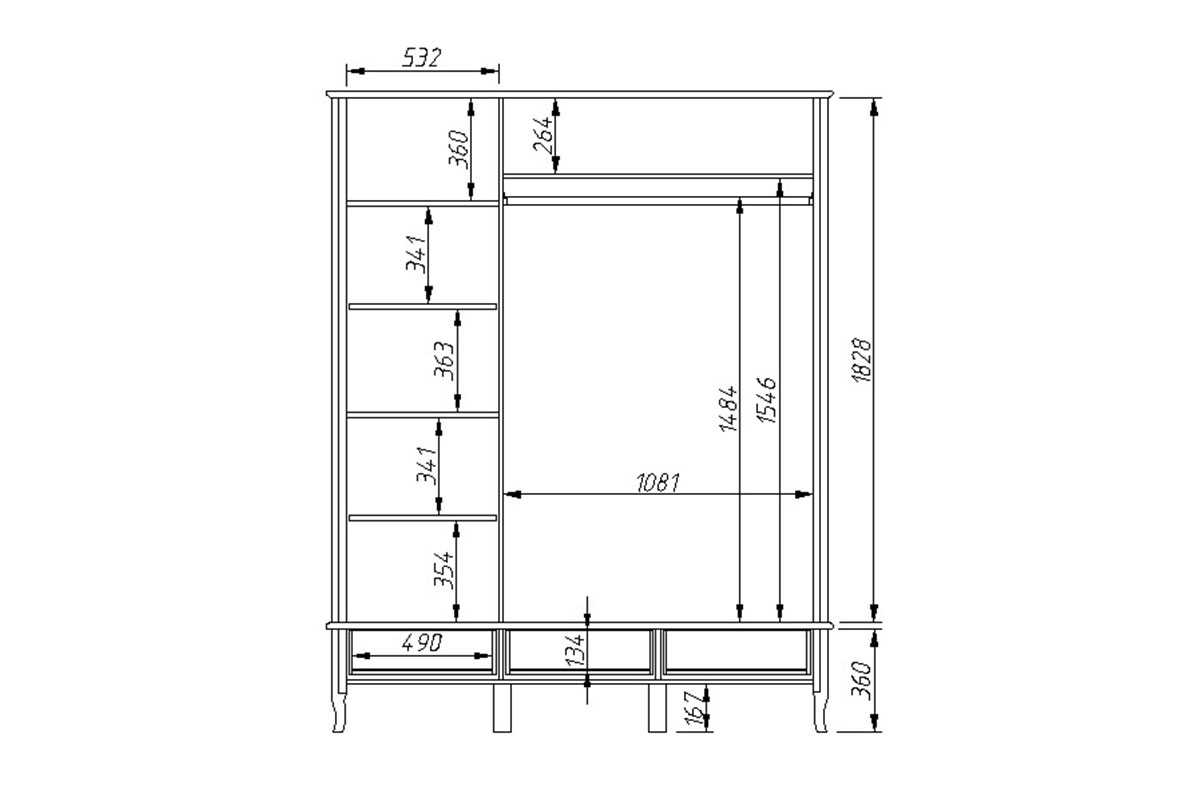 Шкаф для одежды "Катрин" фигурный 3-х дв. без зеркала, альба с серебряной патиной, (.Г000052276)