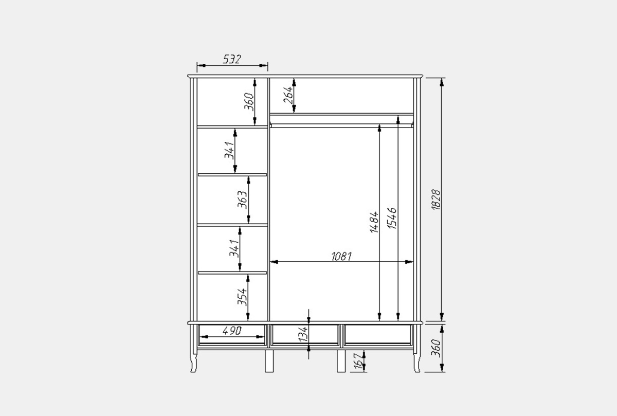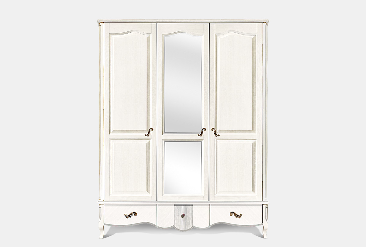 Шкаф для одежды "Katrin" фигурный 3-х дв. с зеркалом, альба с серебряной патиной, (.Г000052275)