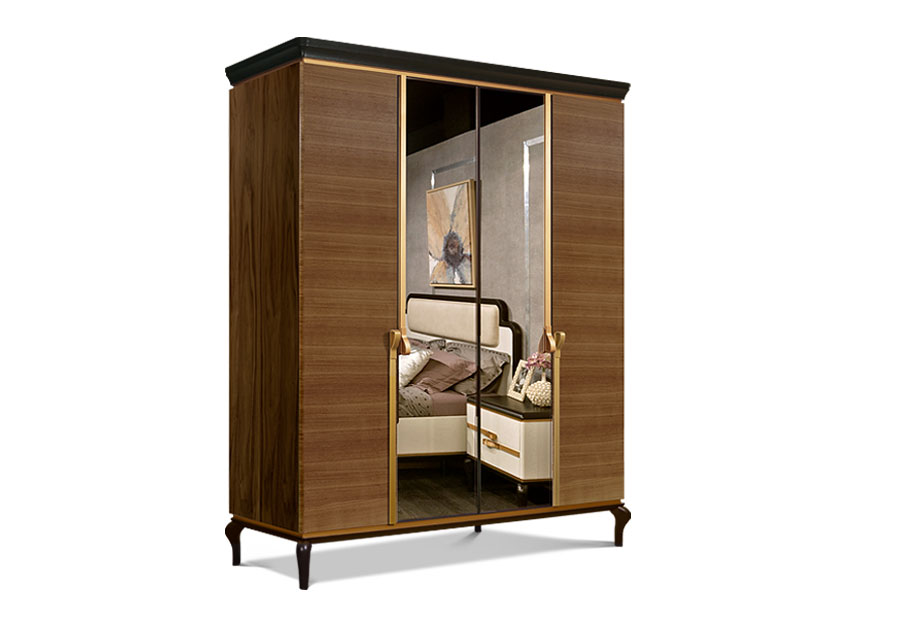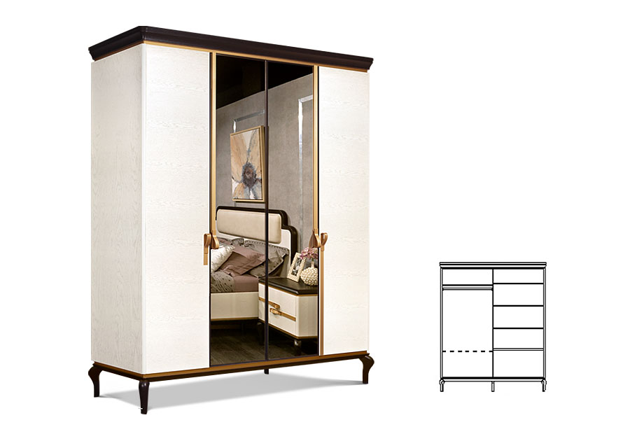 Элегантный и вместе с тем вместительный шкаф для одежды «Мадлен» (Madlen) выдержан в итальянском стиле – безупречная фурнитура под «золото» и фигурные ножки являются тому подтверждением.