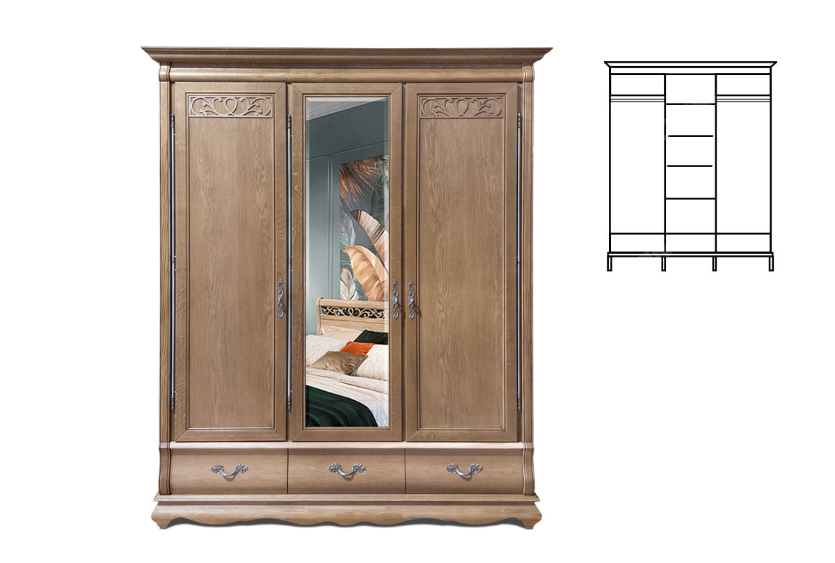 Шкаф для одежды "Оскар" 3-х дв. с зеркалом, классик, (.Г000078447)