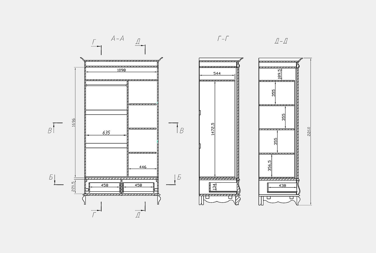 ✅ Съемные полки и штанга для одежды внутри.