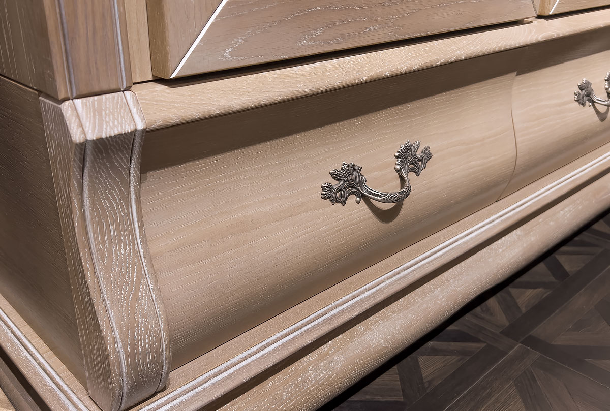 ✅ Гнутые фасады ящиков и фигурный цоколь в виде «волны».