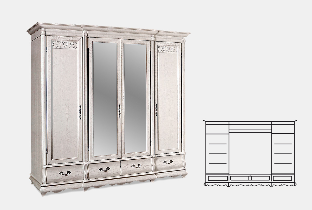 Особенности четырехдверного шкафа для одежды (с зеркалом) «Тэфи»: