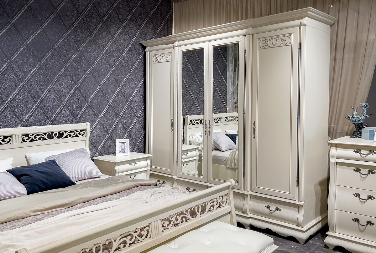 Особенности четырехдверного шкафа для одежды (с зеркалом) «Тэфи»: