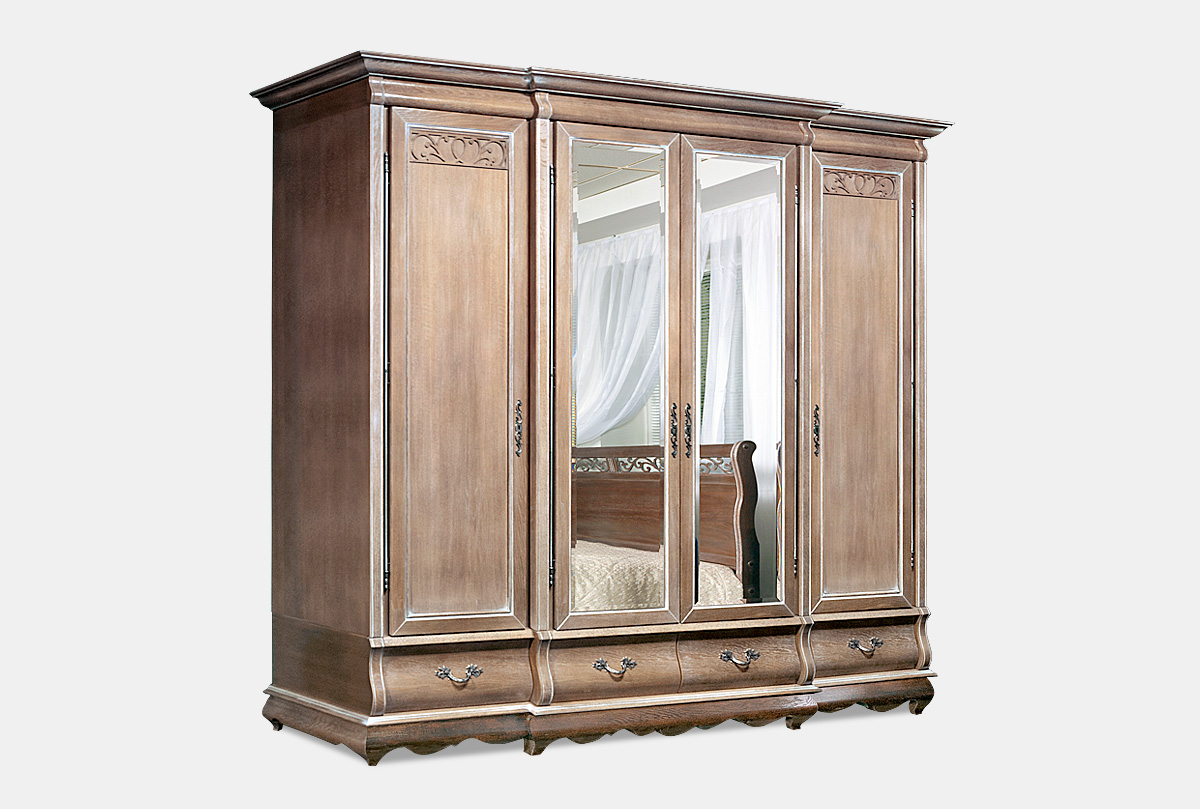 Особенности четырехдверного шкафа для одежды (с зеркалом) «Тэфи»: