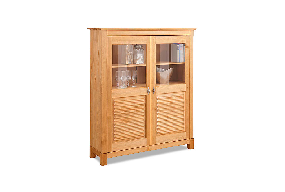 Шкаф для посуды «Рауна» 20 из массива сосны для вашей гостиной или столовой в стиле Прованс. Простой и функциональный, он представляет собой четыре вместительные полки за двумя распашными дверями с декоративными стеклянными вставками. Если девиз “красота, практичность и ничего лишнего” вам по душе, понравится и это изделие.