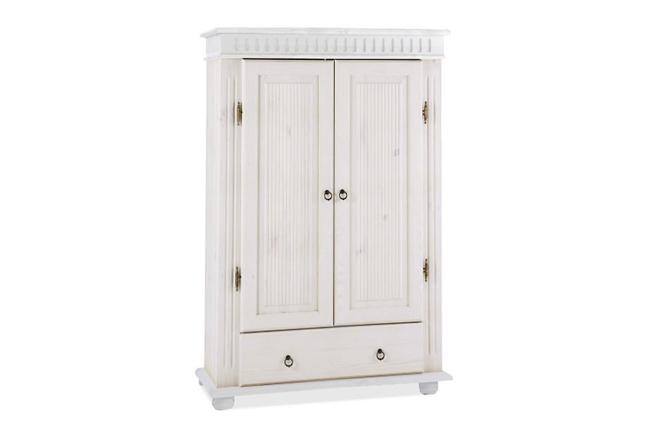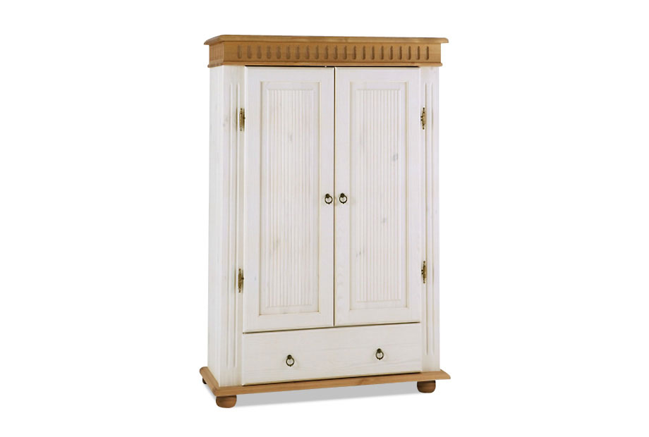 Шкаф «Хельсинки-21» (Helsinki) в скандинавском стиле прекрасно впишется в любой современный интерьер. За двумя распашными дверями скрывается 4 полки для хранения личных вещей, а внизу есть выдвижной ящик. Ручки и петли «под старину» придают ему дополнительный шарм.