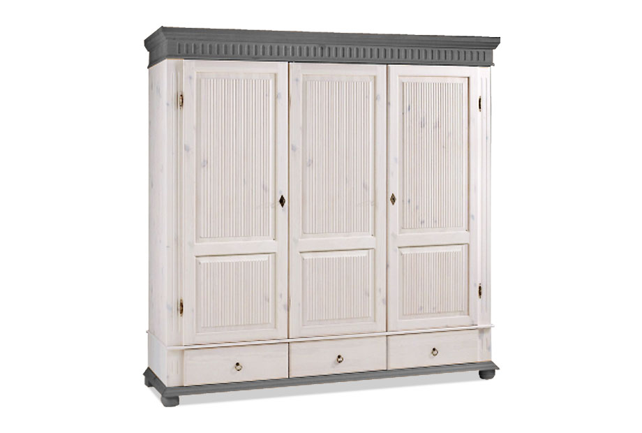 Шкаф «Хельсинки-3-GT-М» (Helsinki) с тремя распашными дверями надежно сохранит ваши личные вещи от пыли, шерсти животных и других неприятностей. Его даже можно запереть на ключ. Внутри есть большая секция для одежды со штангой и секция поменьше с 4 полками, а внизу гармонично расположены 3 выдвижных ящика.
