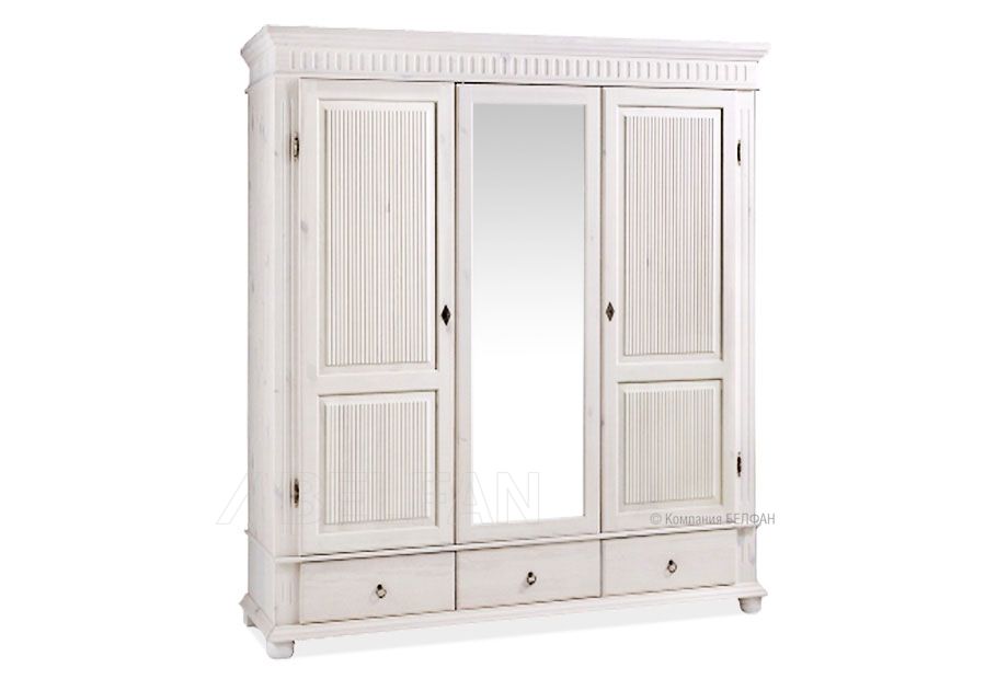 Трехстворчатый шкаф «Хельсинки-3-SP-GT» (Helsinki) из массива сосны с зеркалом - идеальное решение для большого гардероба. Внутри имеется вместительное пространство для одежды со штангой и две секции с 4 полками каждая, а также три выдвижных ящика внизу. Дверь посередине оборудована зеркалом в полный рост. Все двери можно запереть на замок, благодаря чему вы сможете быть уверены в сохранности своих вещей!