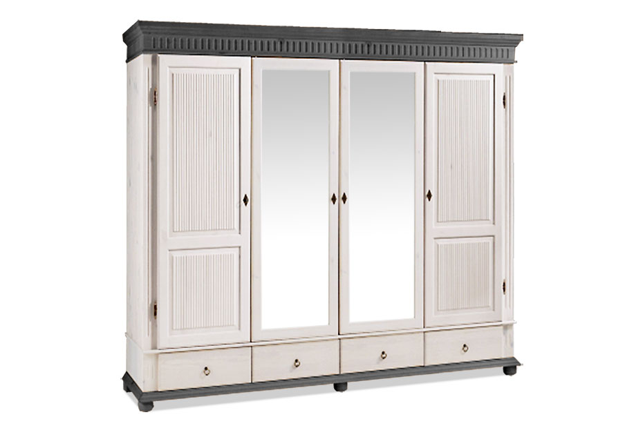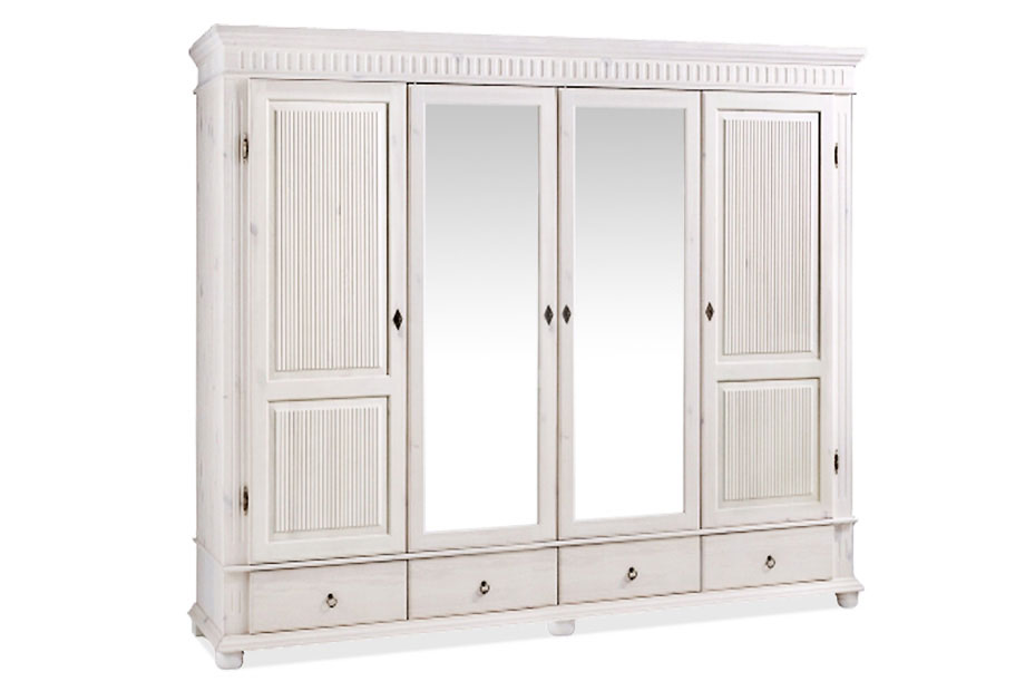 Внушительный шкаф «Хельсинки-4-SP-GT-M» (Helsinki)с 4 распашными дверями - то, что нужно, если у вас большой гардероб. Он оснащен двумя зеркалами в полный рост, а внутреннее наполнение - это пространство для одежды со штангой посередине и два отделения с полками по бокам. Также имеется место для головных уборов и выдвижные ящики внизу.