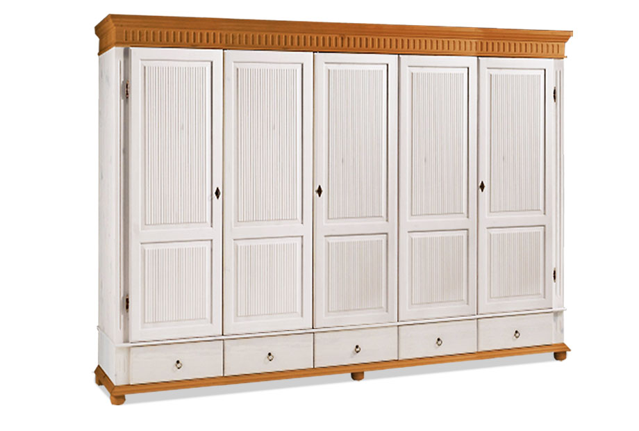 Шкаф «Хельсинки-5-GT-M» (Helsinki) займет много места, но и сохранит в порядке весь ваш гардероб. Он оснащен 5 распашными дверями, за которыми находятся два отделения для одежды со штангами и секции с полками для других вещей и головных уборов. Под каждой дверью находятся выдвижные ящики.