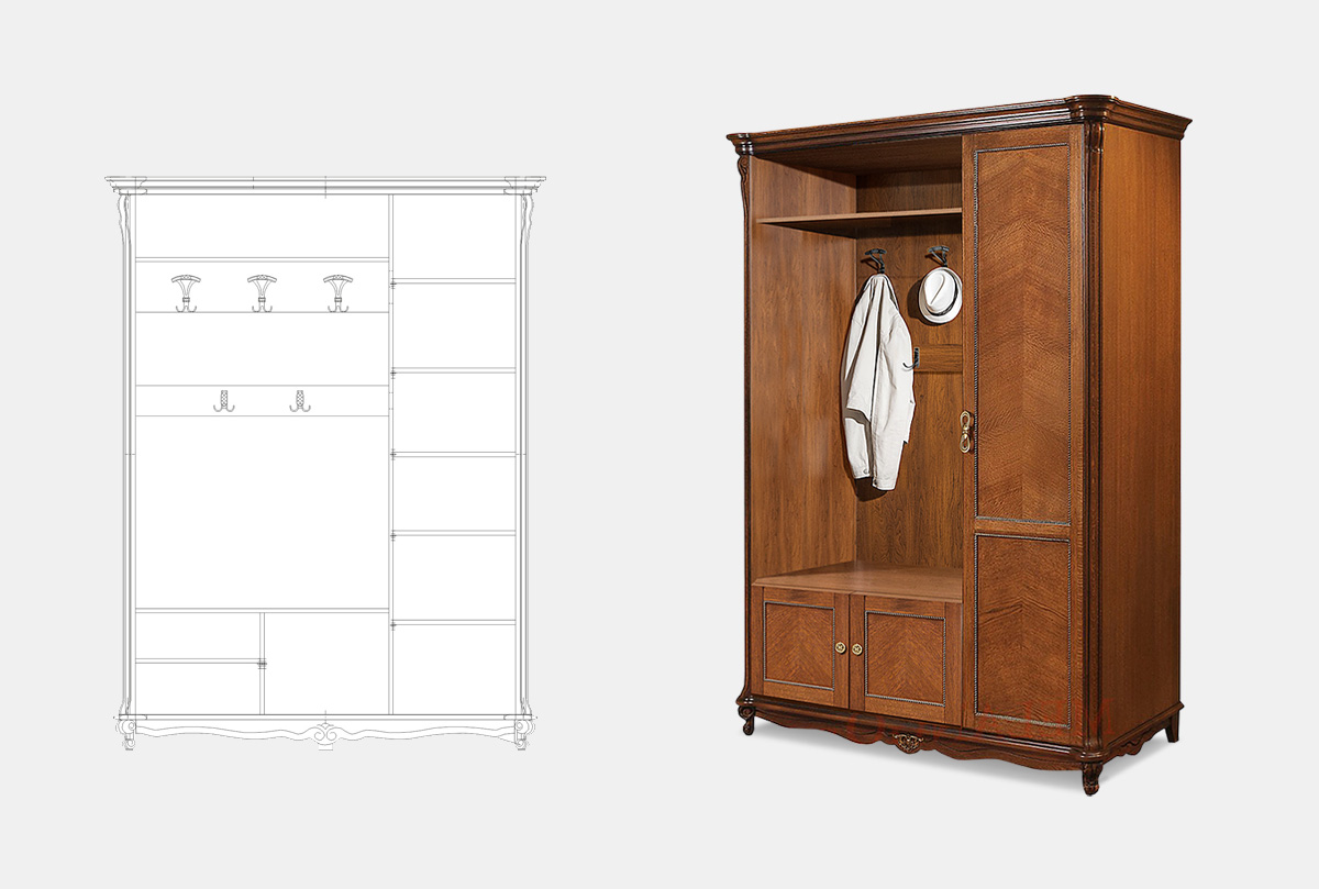 ✅ Правая/левая сторона определяется по расположению крючков. Если Вам необходимо, чтобы крючки были с правой стороны, вам нужно выбирать правый шкаф.