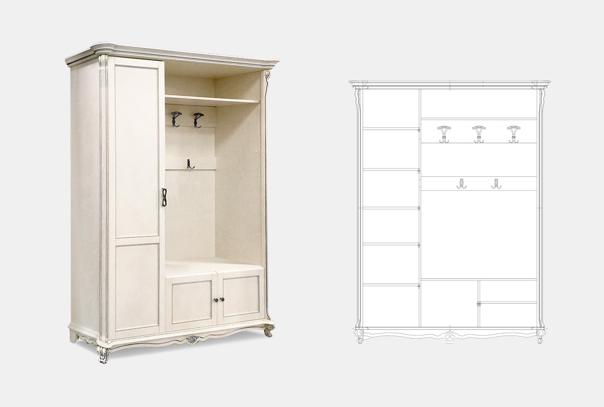 ✅ Правая/левая сторона определяется по расположению крючков. Если Вам необходимо, чтобы крючки были с правой стороны, вам нужно выбирать правый шкаф.