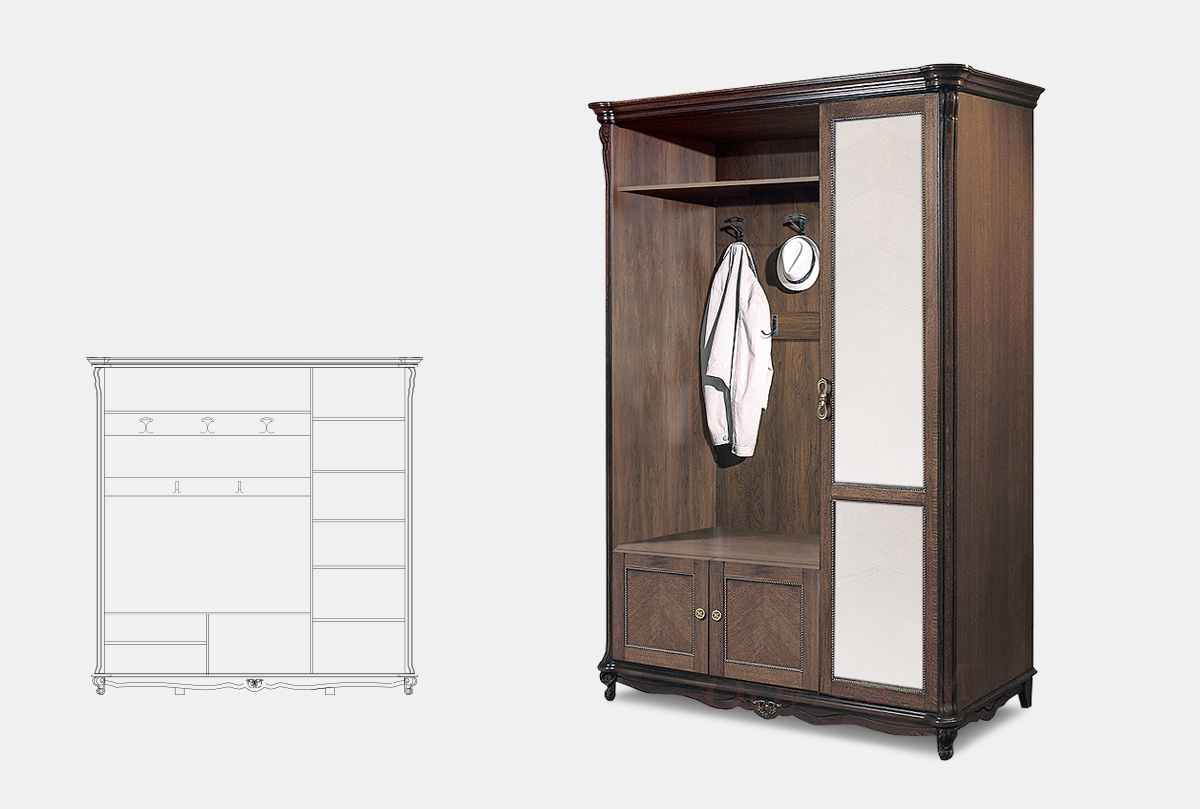 ✅ Правая/левая сторона определяется по расположению крючков. Если Вам необходимо, чтобы крючки были с правой стороны, вам нужно выбирать правый шкаф.