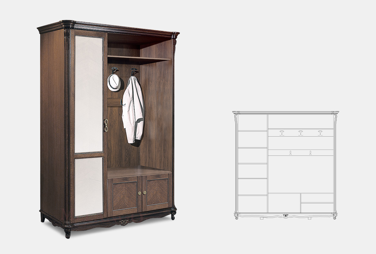 ✅ Правая/левая сторона определяется по расположению крючков. Если Вам необходимо, чтобы крючки были с правой стороны, вам нужно выбирать правый шкаф.