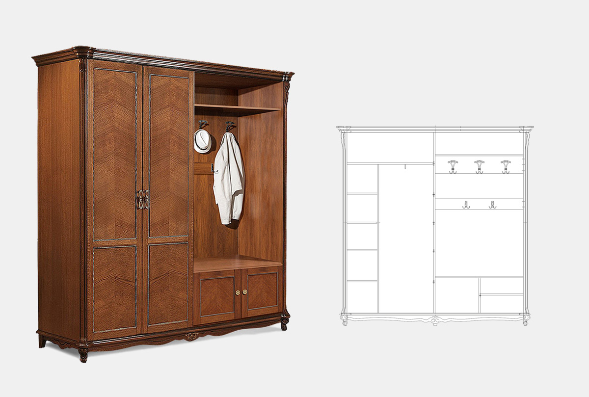 ✅ Правая/левая сторона определяется по расположению крючков. Если Вам необходимо, чтобы крючки были с правой стороны, вам нужно выбирать правый шкаф.