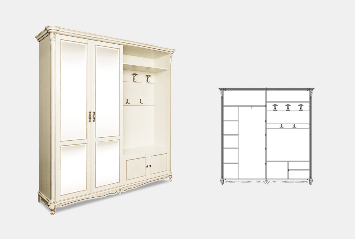 ✅ Правая/левая сторона определяется по расположению крючков. Если Вам необходимо, чтобы крючки были с правой стороны, вам нужно выбирать правый шкаф.